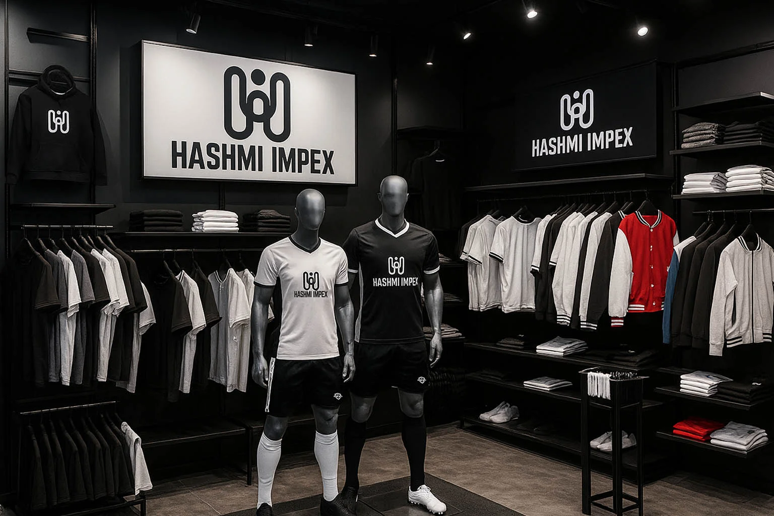 Welcome to the official Hashmi Impex Store, where quality, innovation, and style come together under one roof. Our store represents the spirit of our brand — modern, dynamic, and dedicated to excellence. Every section is thoughtfully designed to showcase our wide range of sportswear, fitness apparel, and casual clothing, crafted to meet the highest standards of comfort and performance.